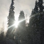 Sicherlich ist es zu früh für ein erstes Resümee, aber wir haben heute mal über die Ausrüstung philosophiert. Bis hierhin hätte uns vermutlich jeder x-beliebige PKW mit Winterreifen auch gebracht. Der Allrad war hilfreich, die Spikes des Terrano auch, aber in keiner Situation wären Golf und Co. überfordert gewesen. Dank des guten Wetters haben wir ein bisschen viel Wintergear – Schneehosen, zwei Satz Handschuhe etc. – dabei, aber das wir so einen Kuschelwinter erwischen würden, konnte ja auch niemand ahnen. Der Ski-Doo-Opi gestern hat uns sein Leid geklagt, dass seine Seen nur 40cm und nicht, wie sonst, 60cm Eisdecken haben …